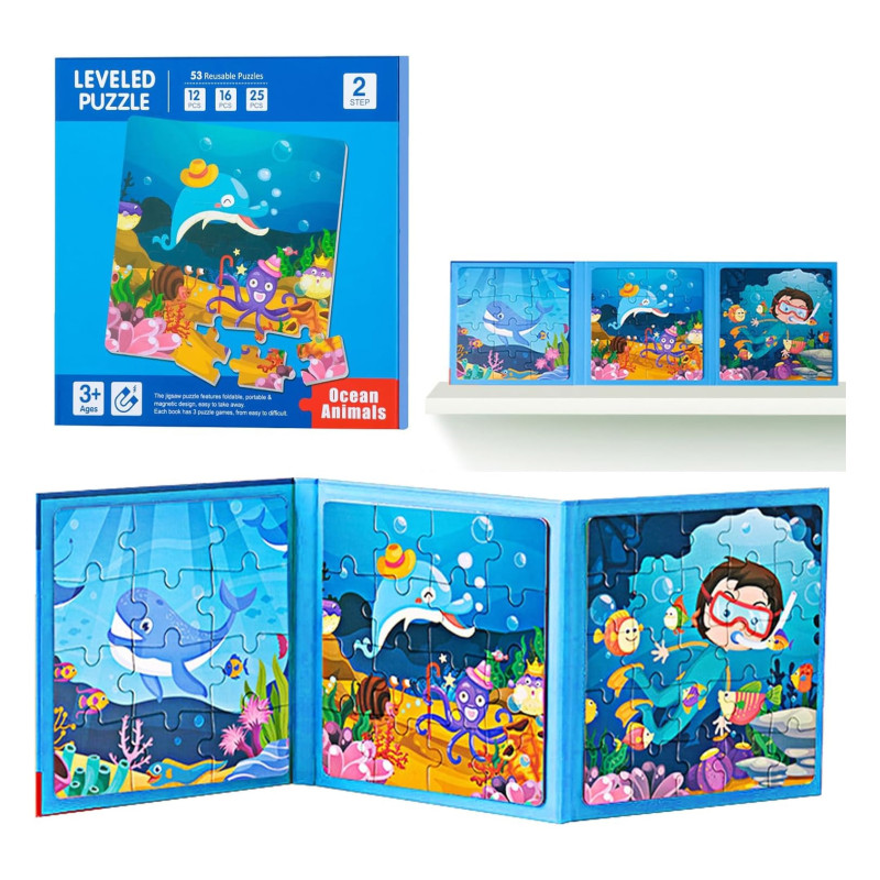 Το Μαγνητικό Βιβλίο Ocean Animals (3 σε 1) προσκαλεί τα παιδιά να ανακαλύψουν το κόσμο του βυθού. Ένα παιχνιδιάρικο και εκπαιδευτικό παιχνίδι που συνδυάζει μαγνήτες, παζλ και δημιουργική αφήγηση, ιδανικό για να κρατάει τα παιδιά απασχολημένα με διασκέδαση και μάθηση.