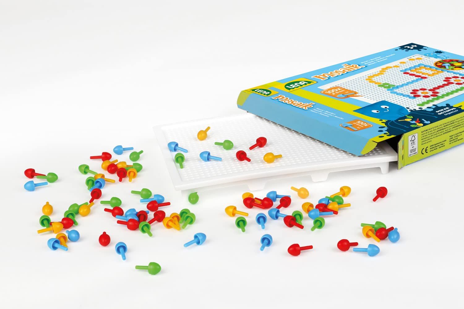 Το Lena Μωσαϊκό είναι ένα δημιουργικό παιχνίδι για παιδιά από 3 ετών, που ενισχύει τη φαντασία, τη συγκέντρωση και τη λεπτή κινητικότητα. Περιλαμβάνει 100 χρωματιστά πιόνια (κόκκινο, μπλε, πράσινο, κίτρινο) . και λευκή βάση. Τα παιδιά μπορούν να δημιουργούν μοναδικά σχέδια ή να ακολουθούν τα έτοιμα μοτίβα που περιλαμβάνονται. Το σετ συνοδεύεται από πρακτική θήκη αποθήκευσης σε σχήμα χταποδιού.