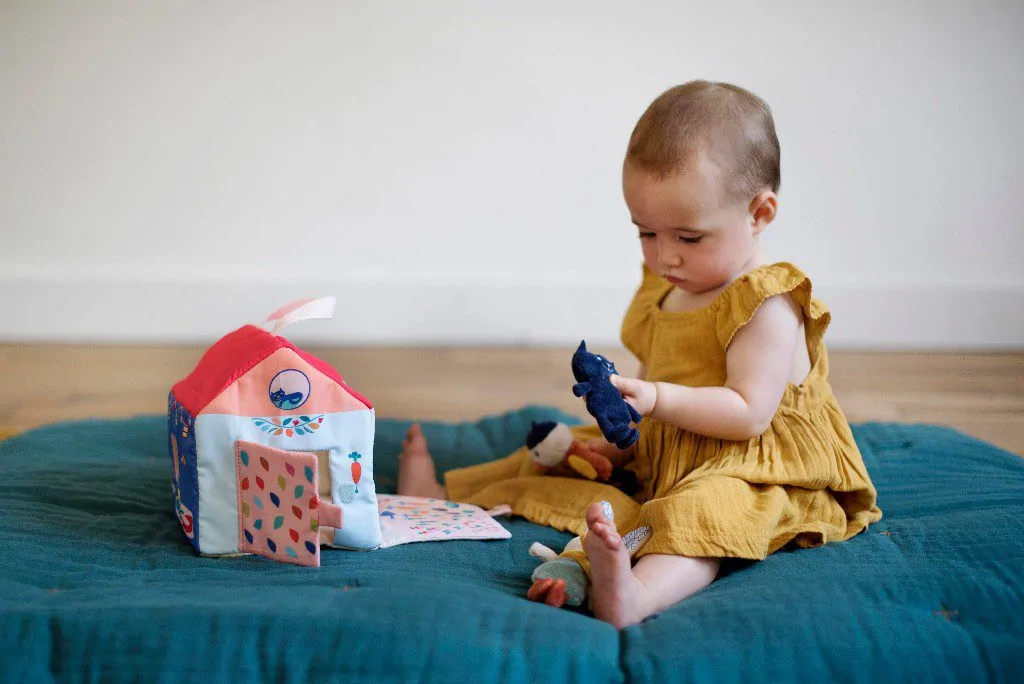 Στο σπίτι του λαγού Gabin βρίσκουμε επίσης τους δύο φίλους του, τη γάτα και το πουλάκι. Η μπροστινή πλευρά ανοίγει με μια μικρή ταινία Velcro για να αποκαλύψει τον λαχανόκηπο! Η πόρτα μπορεί επίσης να ανοίξει και τέλος το μωρό μπορεί να αφήσει τους φίλους του να περάσουν από το παράθυρο, σαν σε ένα κουτί με σχήματα.