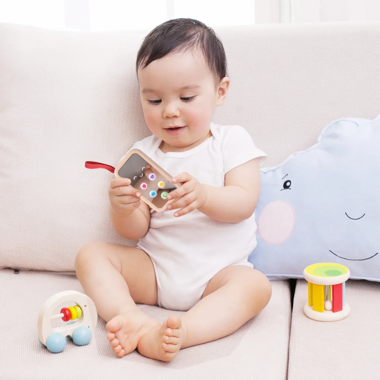 Αυτό το μουσικό κινητό τηλέφωνο θα διασκεδάσει το μωρό σας για μια ολόκληρη μέρα! Πιέστε τα κουμπιά και διαλέξτε διαφορετικές λειτουργίες. Ο καθρέφτης αντανακλά το χαμόγελο του παιδιού. Το τηλέφωνο βοηθά στο συντονισμό χεριού-ματιού και στην εξάσκηση των δαχτύλων του παιδιού.